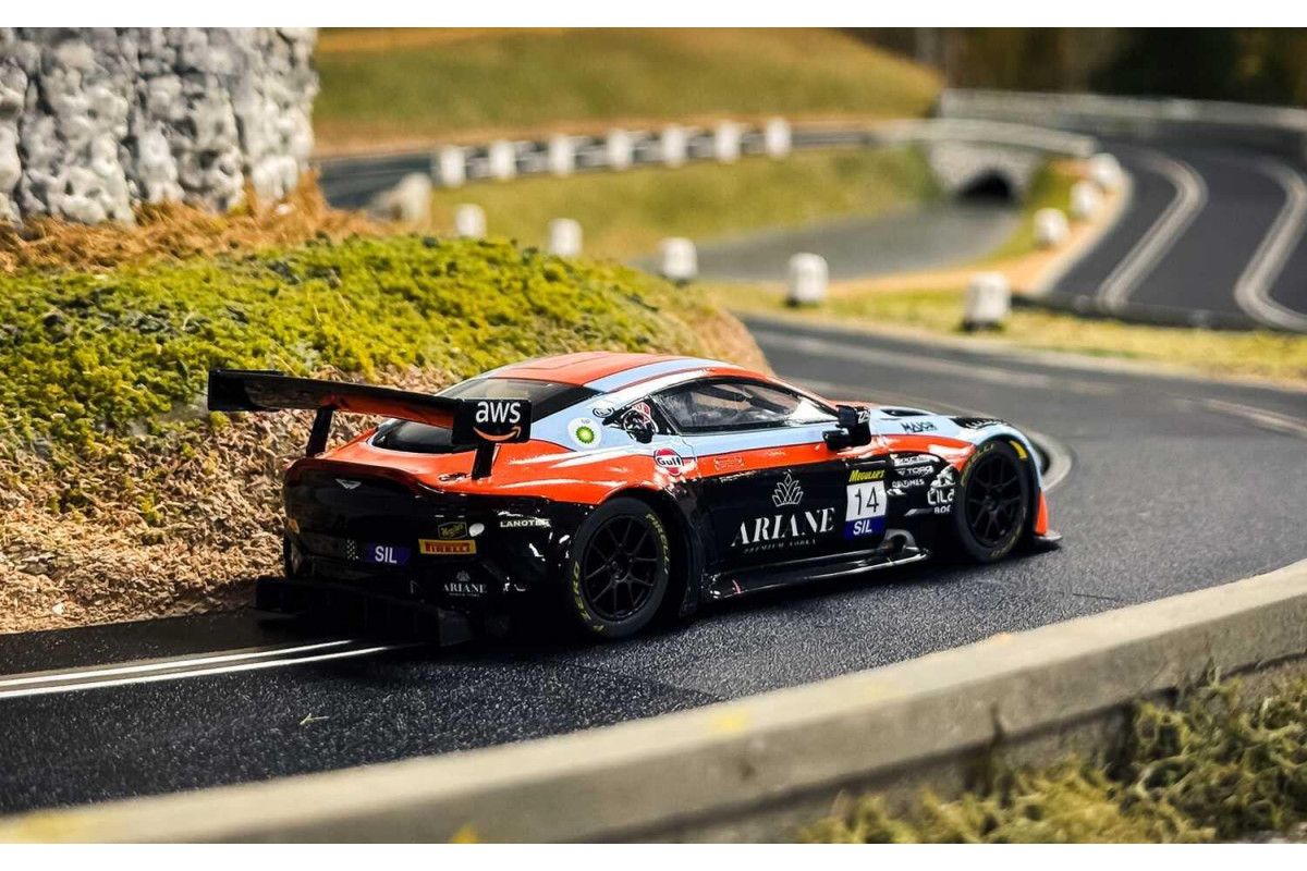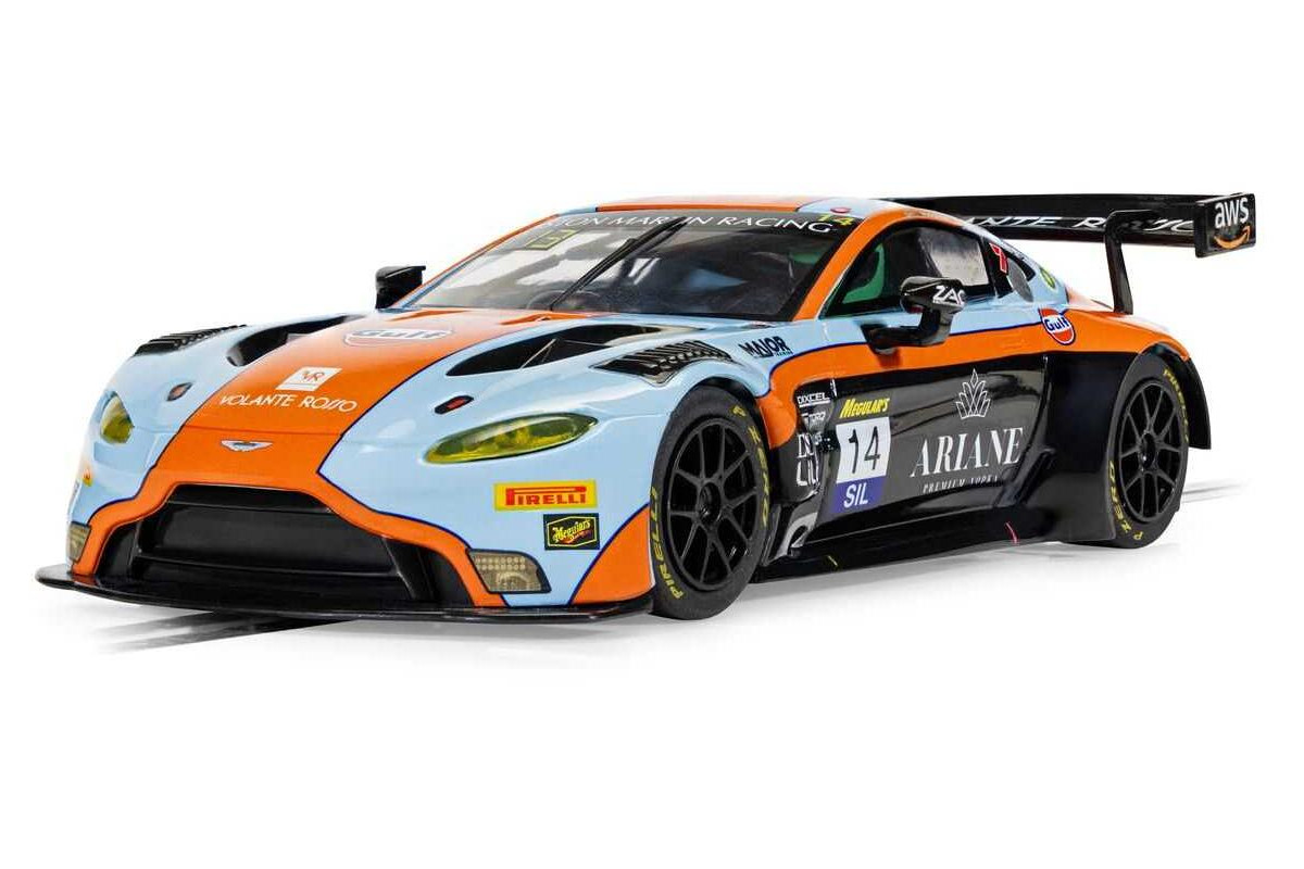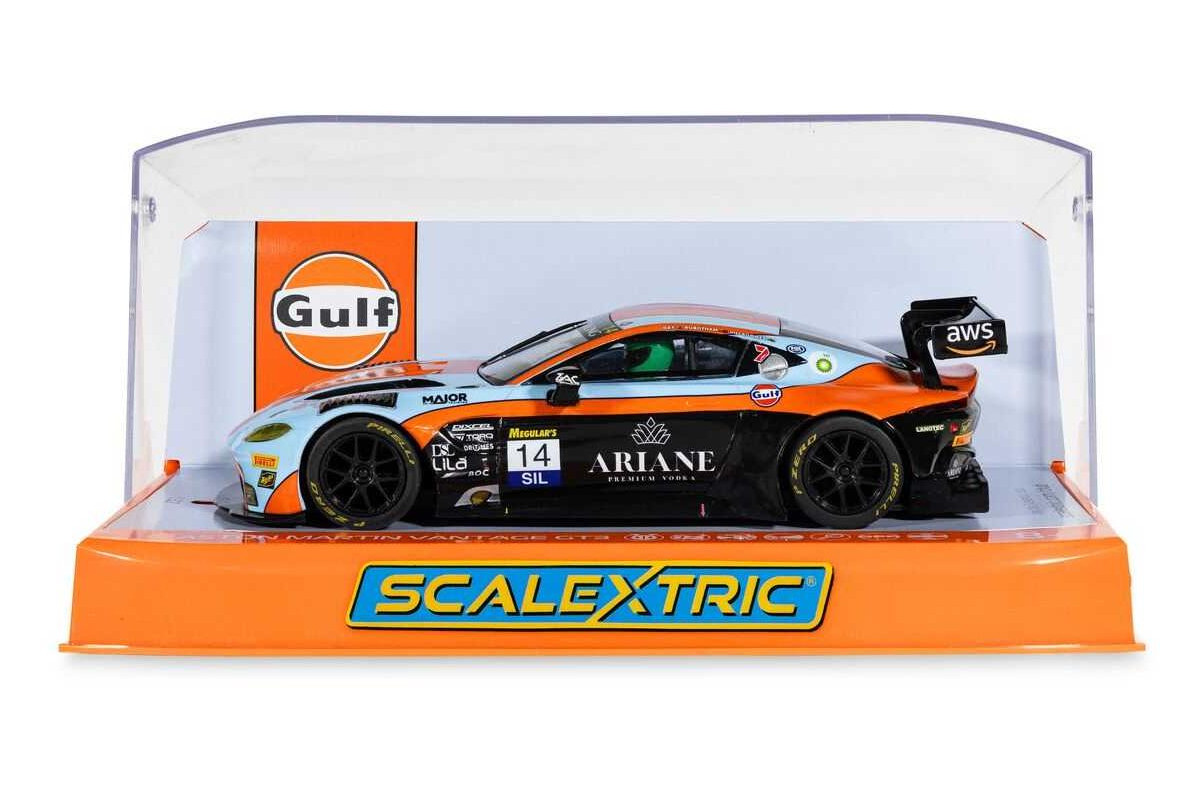 Aston Martin GT3 Vantage vtrhne na vaši dráhu Scalextric v nejuznávanějších barvách motoristického sportu: modré a oranžové barvě týmu Gulf. Tento bleskurychlý vůz GT3, který míří na závod 12 hodin Bathurstu 2025, kombinuje legendární barvy týmu Gulf s agresivním vzhledem modelu Vantage a vytváří tak model, který oslavuje tradici vytrvalostních závodů s moderním nádechem.