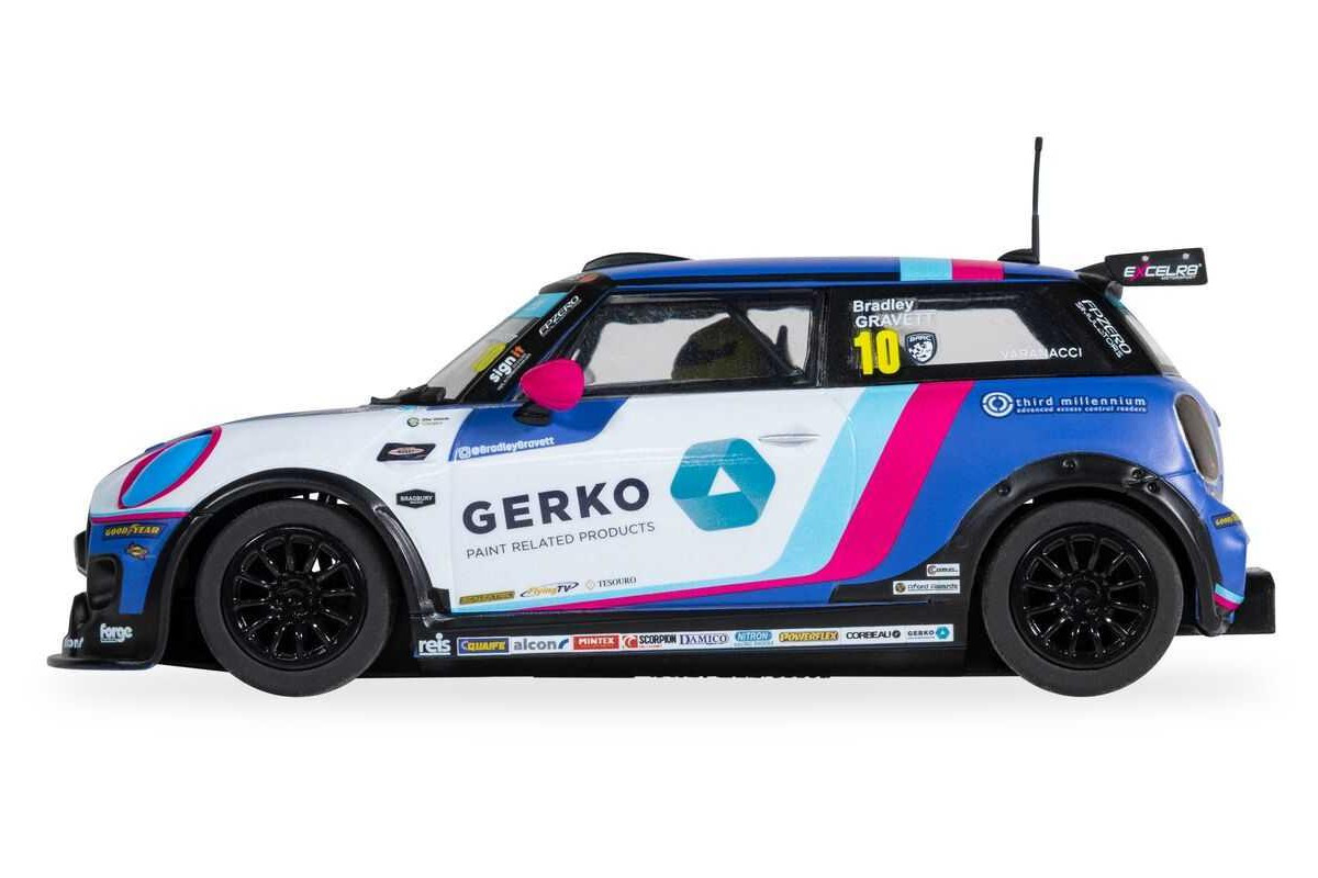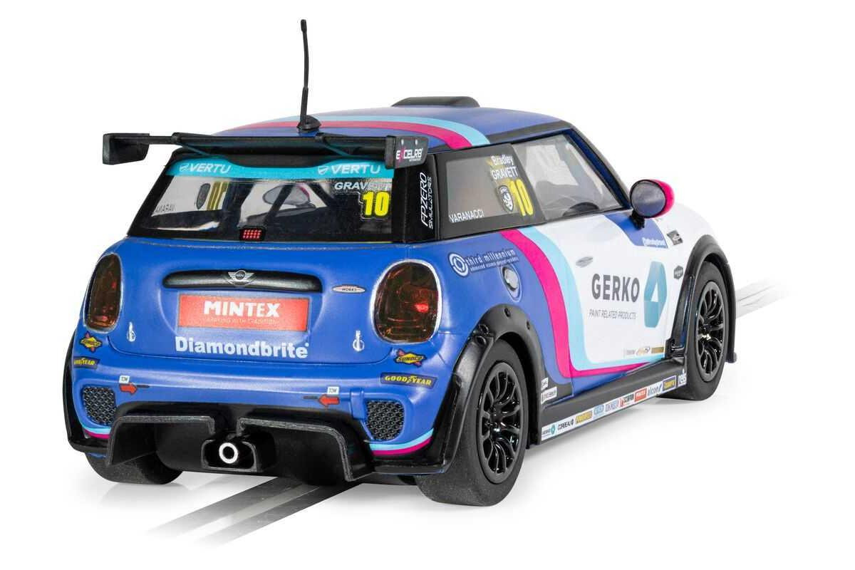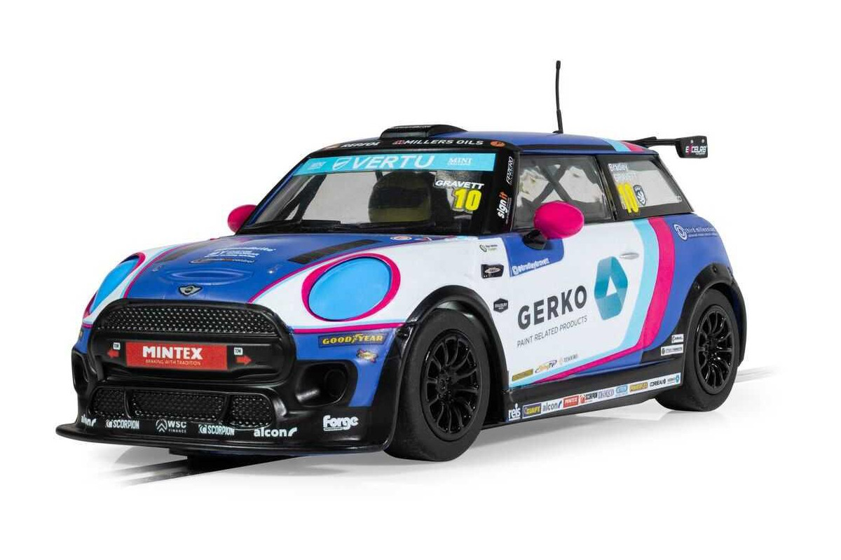 Mini Cooper, který v šampionátu JCW 2024 řídí Bradley Gravett, přináší na vaši dráhu Scalextric vzrušení ze závodů moderních cestovních vozů ve svém nápadném bílo-modrém zbarvení. Tento moderní závodní vůz s číslem 10 navazuje na ikonické dědictví značky Mini a zároveň předvádí špičkový výkon, díky kterému je šampionát JCW takovou podívanou. Bradley Gravett kráčí ve stopách svého otce, legendy britských cestovních vozů Robba Gravetta, a s dovedností a odhodláním si buduje vlastní závodní odkaz.