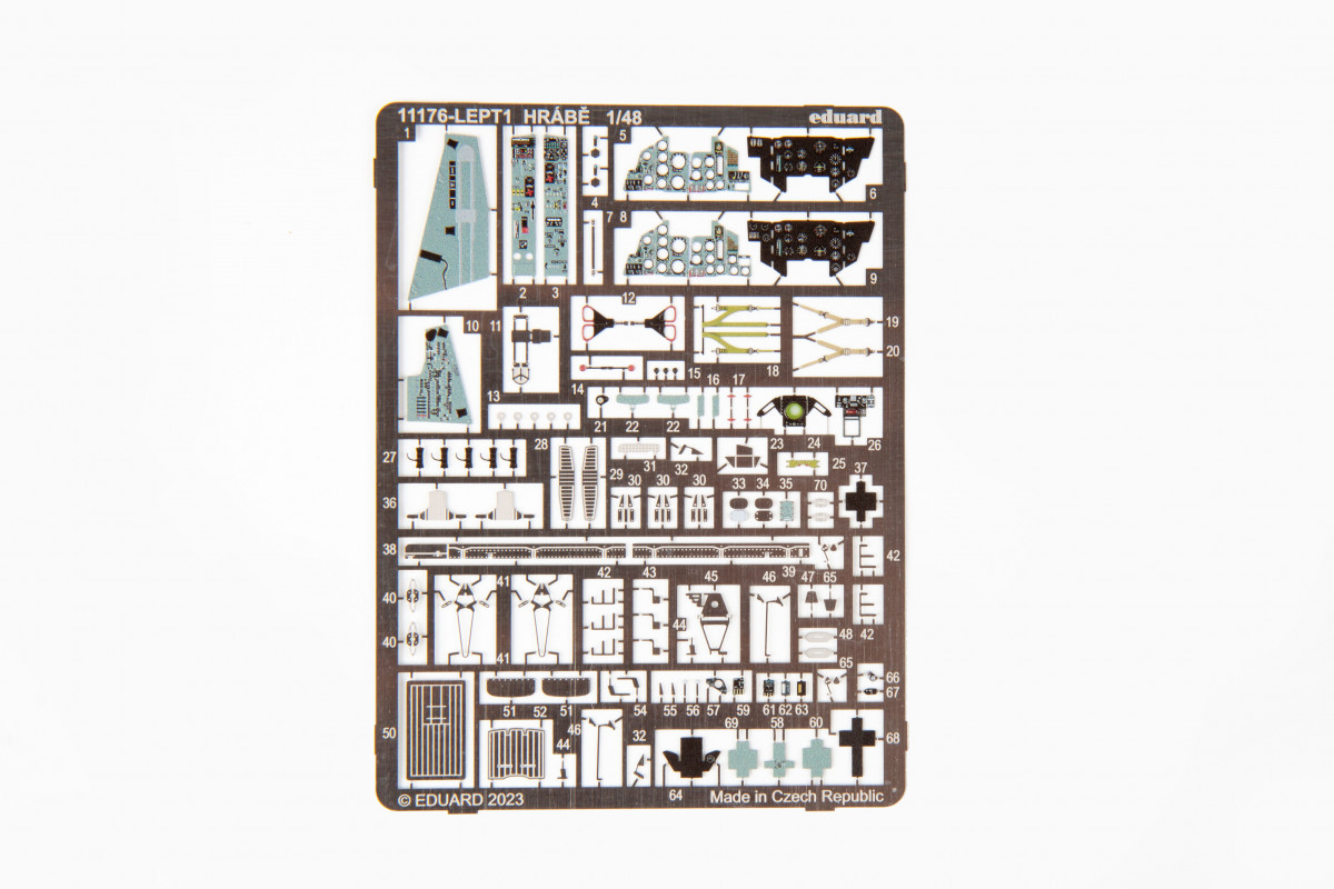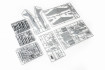 The package contains: plastic Zvezda parts, 10 camouflage schemes, coloured etched parts, Eduard decals, masks, resin parts (brake shields of early design, cannon mouths, wheels, air inlets, cabin strut)