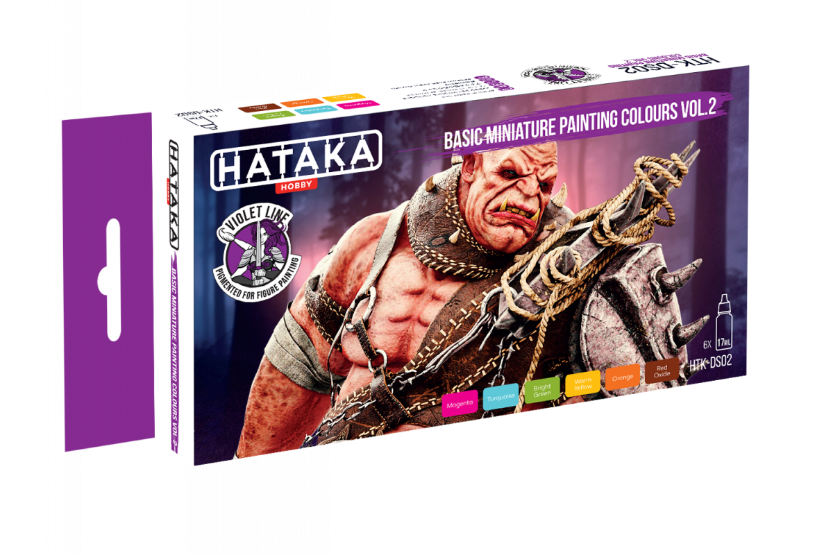 Hataka Violet Line acrylic paints are designed specifically for miniature and figure painting with a brush. This set provides a balanced selection of vibrant and complementary colours based on a 100% acrylic emulsion with a very high pigment concentration of up to 50%.