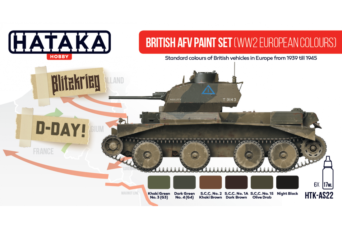 - HTK-A064 – Khaki Green No. 3 (G3) – No. 3 B.S.381-1939. Also known as „Service Colour”. Base colour of British AFV between 1939-41. Also overall colour of some vehicles
