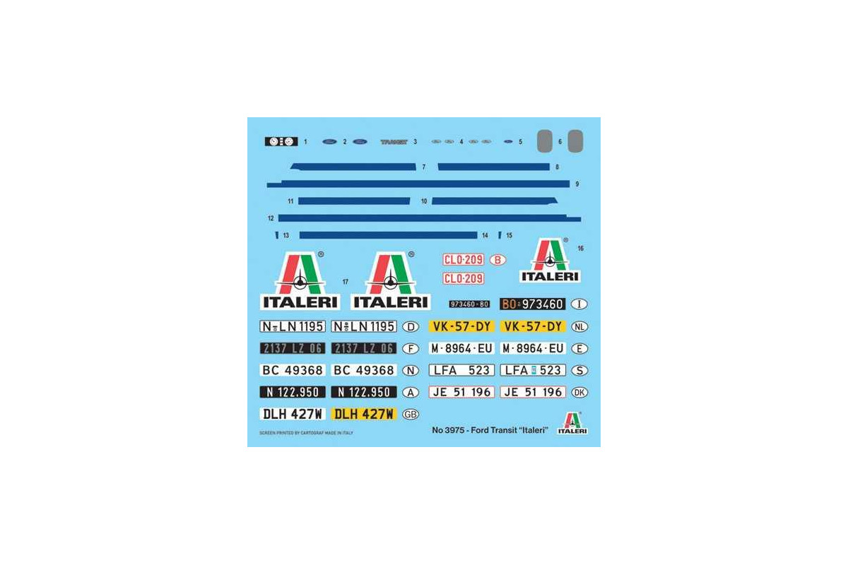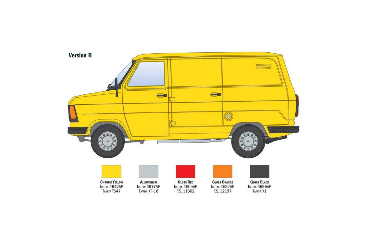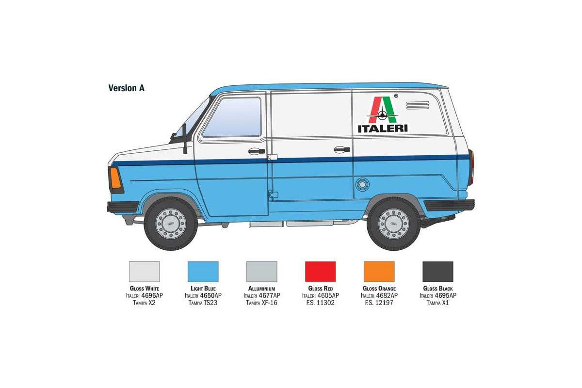 Transit je název řady lehkých užitkových vozidel vyráběných společnostmi Ford/Německo a Ford/Velká Británie od roku 1953 pro evropský trh. Skutečným zlomem byl Transit „druhé série“, uvedený na trh v roce 1965. Konfigurace vozidla, charakterizovaná motorem uloženým vpředu, širokým rozchodem kol a nízkou podlahou, byla ideální pro optimalizaci přepravních činností. Transit byl také k dispozici – inovace na svou dobu – v obrovském množství verzí a konfigurací, od dodávky přes podvozek s kabinou a plošinou až po minibus. Skutečný partner pro řemeslníky, malé podniky a velké společnosti v celé Evropě, které potřebovaly splnit požadavky na krátkodobou komerční mobilitu. Italeri také použila vozidla Ford Transit k dodání speciálního produktu: našich modelových stavebnic.