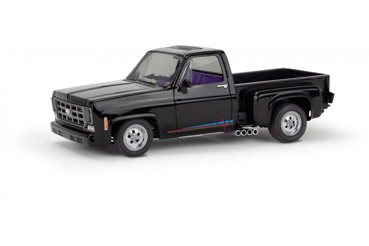 Na počátku 80. let 20. století dominovaly Americe vysokootáčkové pickupy 4X4. V polovině desetiletí se však do popředí dostaly elegantní, přízemní silniční vozy. Model '77 Chevy® Street Truck od společnosti Revell oslavuje tuto éru svým klasickým designem "hranaté karoserie", obohaceným o typické úpravy z osmdesátých let. Jedním z vrcholů je motor 350 V-8 s laděným vstřikováním, doplněný nápadnými bočními výfuky a speciálními rolovacími tyčemi pro přední část. S dobovými koly Champ 500 a kalifornskými nálepkami se každý model stává jedinečným uměleckým dílem.