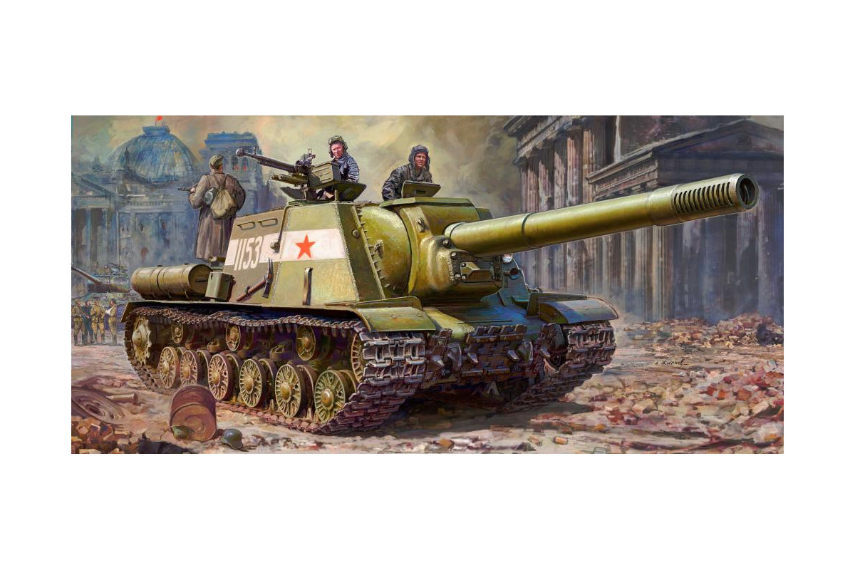 Plastic model kit of the Soviet Self-propelled Gun ISU-152 in 1/35 scale by Zvezda (kit no. 3721) represents a heavy Soviet self-propelled gun, famously nicknamed “Zveroboy” for its ability to destroy heavily armored German vehicles during World War II.