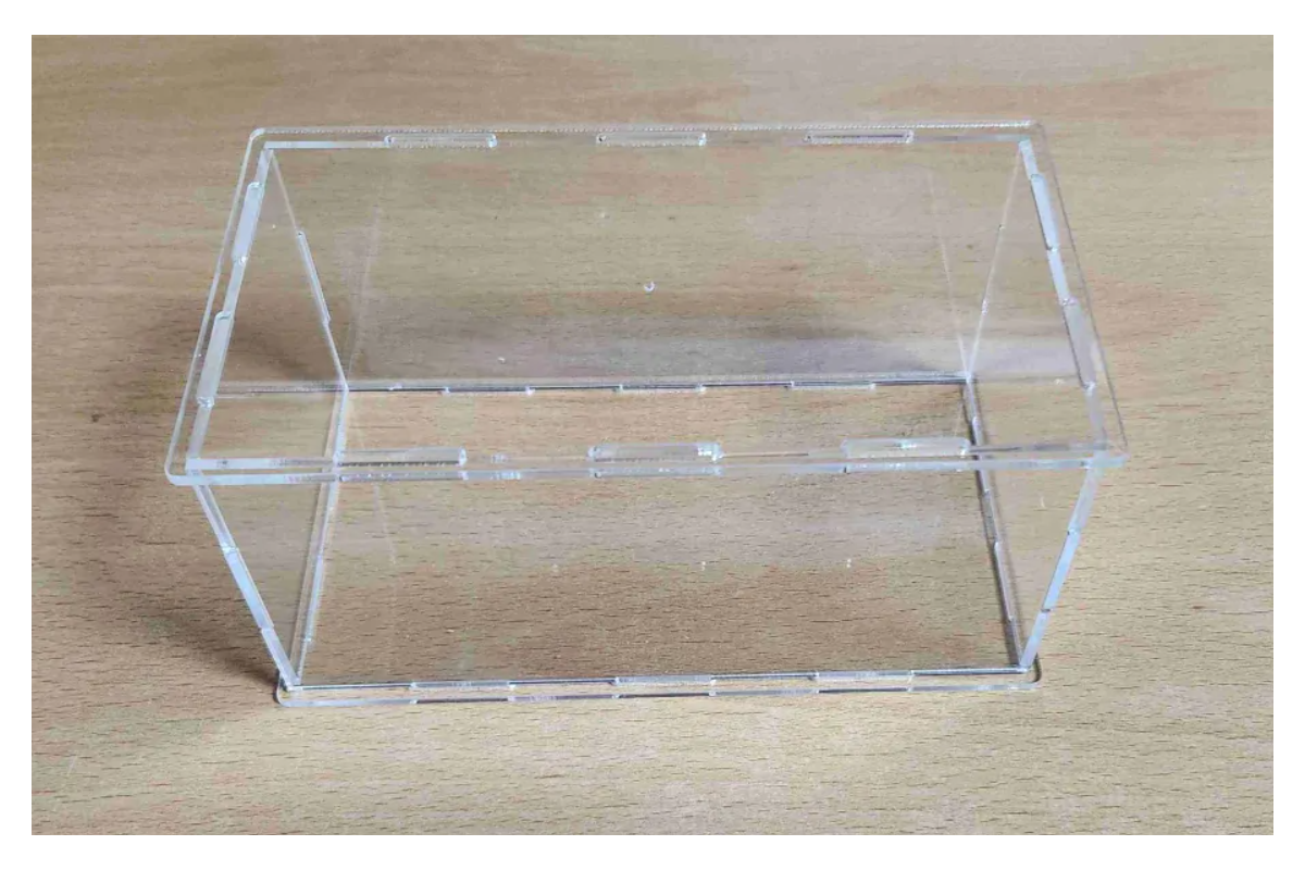 The box is made from 2 mm thick plexiglass and is delivered in a disassembled form. The individual parts fit together precisely, so glue is not required for normal use. The base can be made from clear, black, or mirrored plexiglass depending on the selected variant.