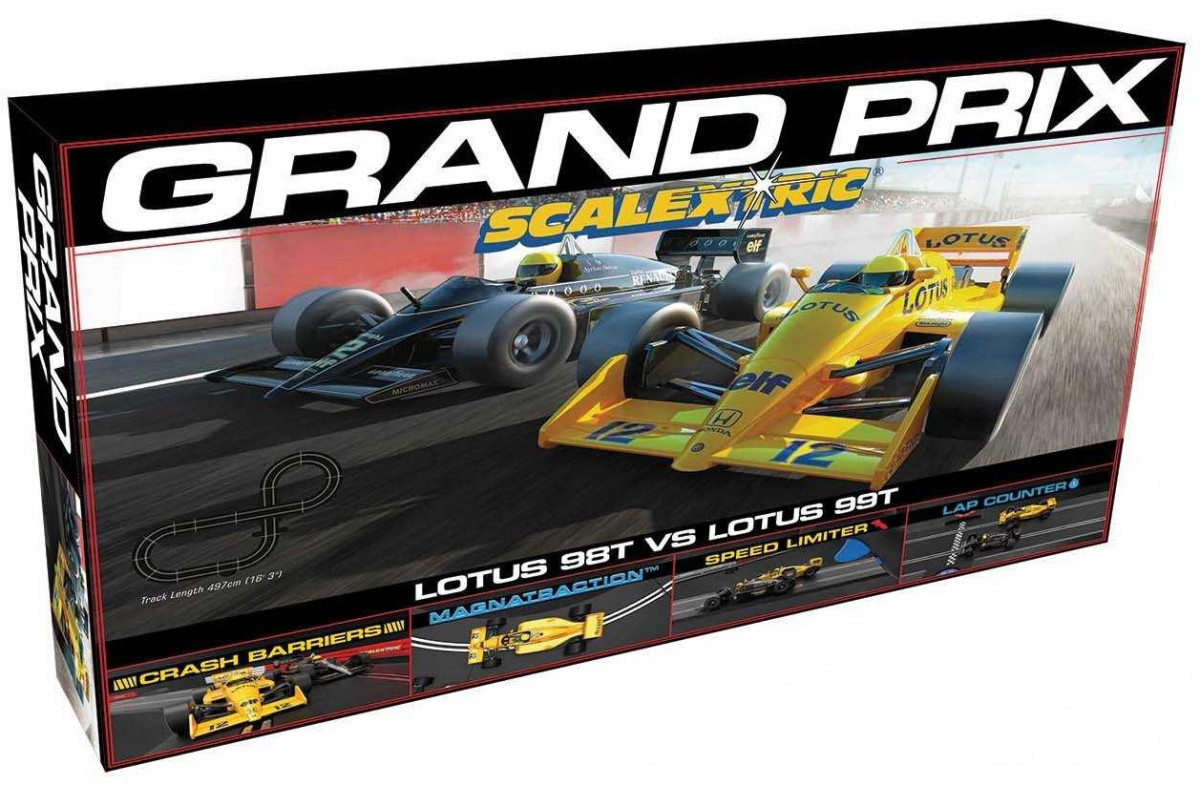 Tato úžasná ‚Grand Prix‘ sada, která obsahuje vzrušující Lotus 98T a dechberoucí Lotus 99T, nabízí nostalgický výlet do minulosti – do zvratů, zatáček a přeplňovaných emocí Formule 1 80. let. Tato retro sada, s níž si budete moci zazávodit se dvěma nejikoničtějšími vozy té doby, jistě oživí vzpomínky na nezapomenutelné závody osmdesátých let. Součástí balení je více než 5,3 metru dlouhá autodráha s počítadlem kol a bouracími bariérami, na které si můžete vyzkoušet pět různých uspořádání trati, a užít si tak dokonalé závodní víkendy.