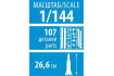 Model vesmír ke slepení. Velikost: 1:144; 26,6 cm. Balení obsahuje: 107 dílků ke slepení.