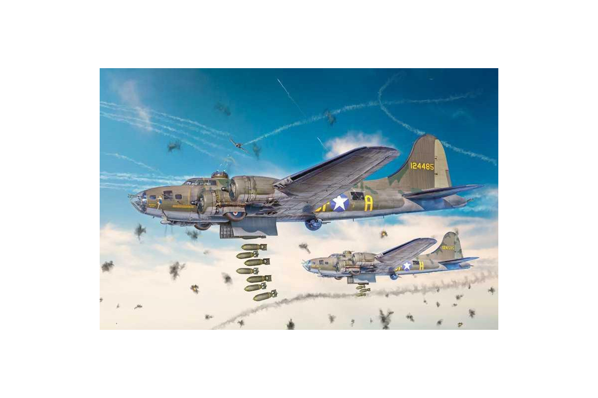 Boeing B-17 „Létající pevnost“ je čtyřmotorový těžký bombardér, který byl během druhé světové války hojně využíván vzdušnými silami armády Spojených států. Byl vyroben ve velkém množství a byl široce používán, zejména 8. leteckou armádou, pro denní strategické bombardovací mise na evropské frontě, často s podporou stíhacích doprovodů na dlouhé vzdálenosti. Varianta „F“ znamenala oproti dřívějším modelům významný pokrok. Boeing B-17F se vyznačoval prodlouženým operačním doletem, schopností nést značné útočné užitečné zatížení a vylepšenou obrannou výzbrojí sestávající z deseti kulometů ráže .50. Jednou z nejoceňovanějších vlastností mezi letovými posádkami byla pozoruhodná schopnost B-17 vrátit se na základnu i přes těžké strukturální poškození nepřátelskou palbou.
