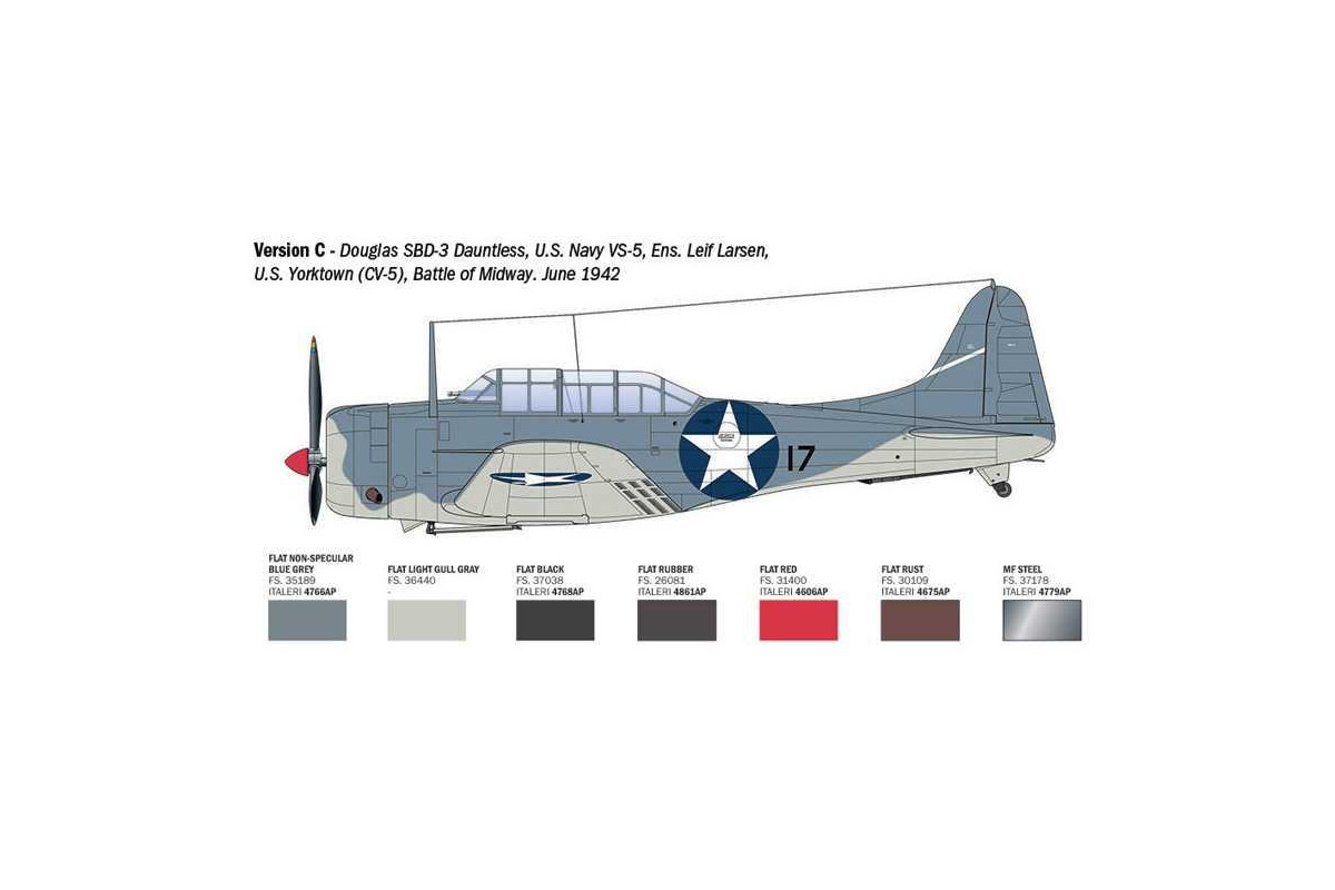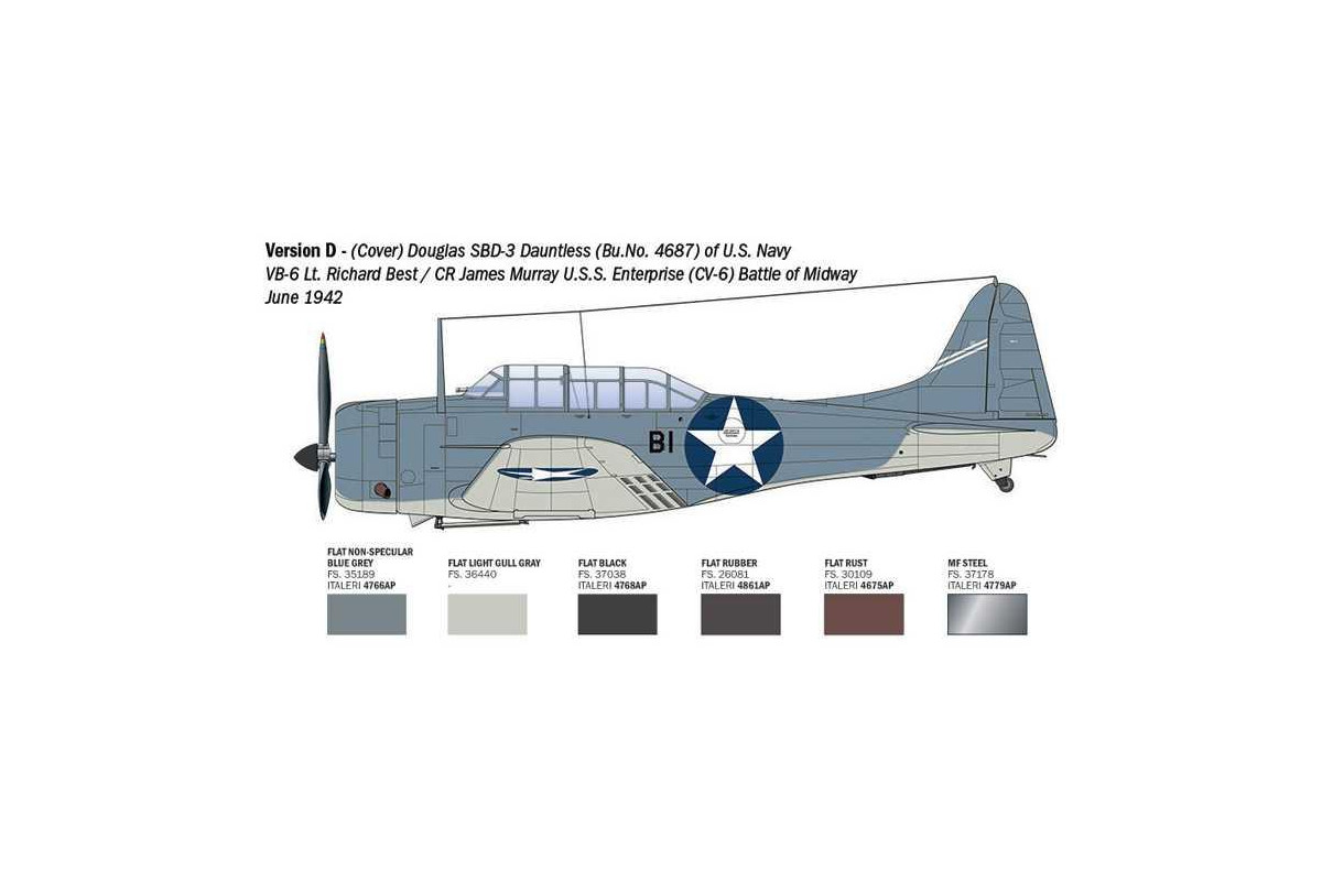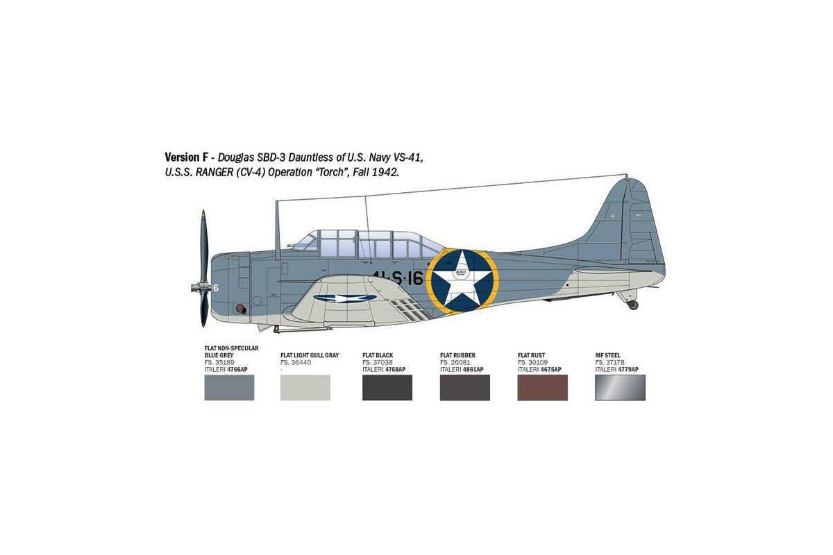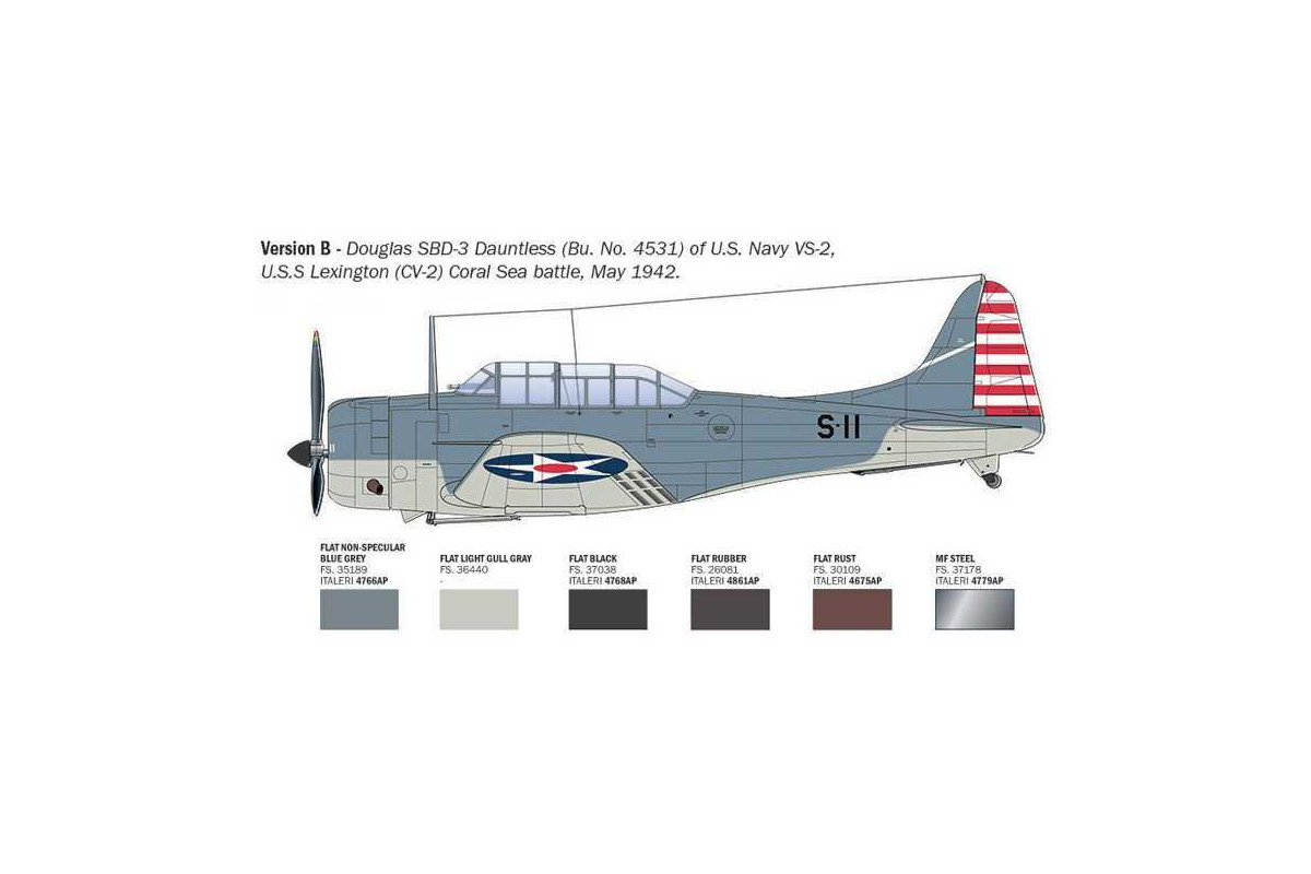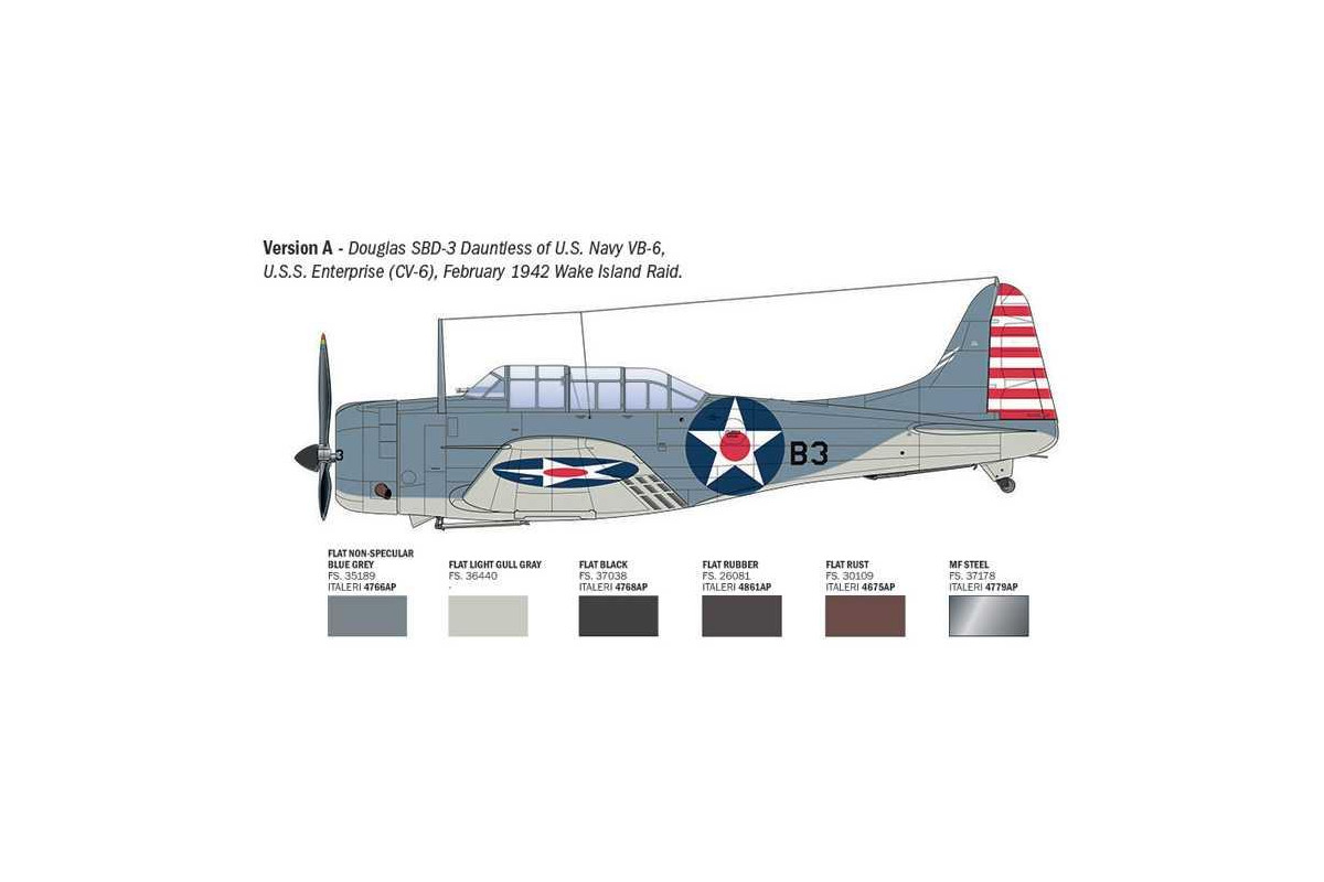 Douglas SBD „Dauntless“ byl jednomotorový dolnoplošník a nejrozšířenější palubní střemhlavý bombardér amerického námořnictva během druhé světové války. Do aktivní služby amerických leteckých jednotek vstoupil v roce 1941 a mohl být použit jak pro průzkumné mise, tak pro střemhlavé bombardování. SBD-3 byl skutečným hrdinou bitvy o Midway (červen 1942), zlomového bodu ve válce v Pacifiku, kde sehrál klíčovou roli při potopení japonských letadlových lodí. Poháněn hvězdicovým motorem Wright R-1820 Cyclone mohl dosáhnout maximální rychlosti 410 km/h. SBD-3 byl schopen nést téměř 2 000 kg bomb. Byl také vybaven dvěma dopředu střílejícími kulomety ráže 12,7 mm (.50 ráže) a dvěma dozadu směřujícími kulomety ráže 7,62 mm (.30 ráže). Posádky si jej vysoce vážily pro jeho robustnost a pevnou konstrukci.