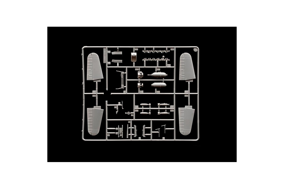 Unassembled and unpainted plastic model of an aircraft from the period of World War II. To successfully complete this kit, additional accessories and tools that are not included in the package are needed. The model must first be glued with an adhesive suitable for plastic models. After assembly, the surface must be painted with paints intended for plastic models. You can choose acrylic (suitable for beginning modelers), lacquer (suitable for use with an airbrush) or enamel paints from our range of goods. If you want the model to look more realistic, we recommend purchasing special chemicals that will give the model the appearance of operational wear and other interesting effects.